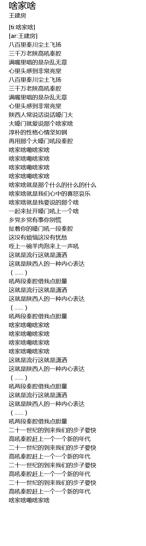 | [04:19.217] | 高吼秦腔赶上一个一个新的年代 |