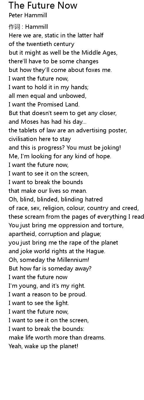 | I want the future now, | |
