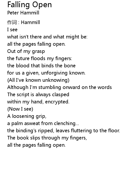 | the binding' s ripped, leaves fluttering to the floor. | |