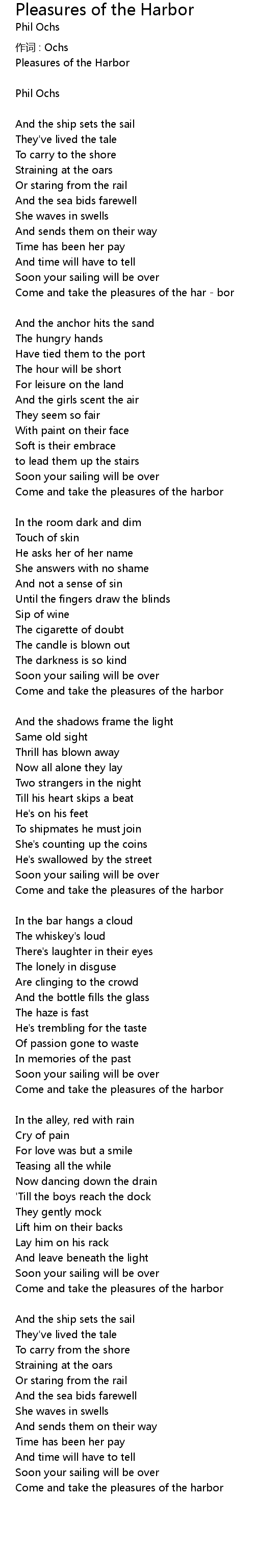 | Come and take the pleasures of the har bor | |