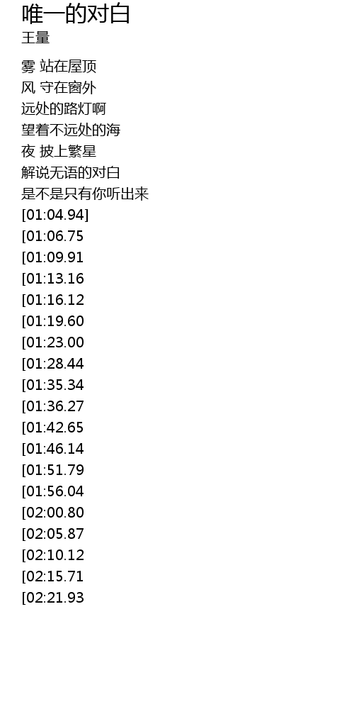 | [03:51.03][02:15.71] | 这是我唯一的对白 |