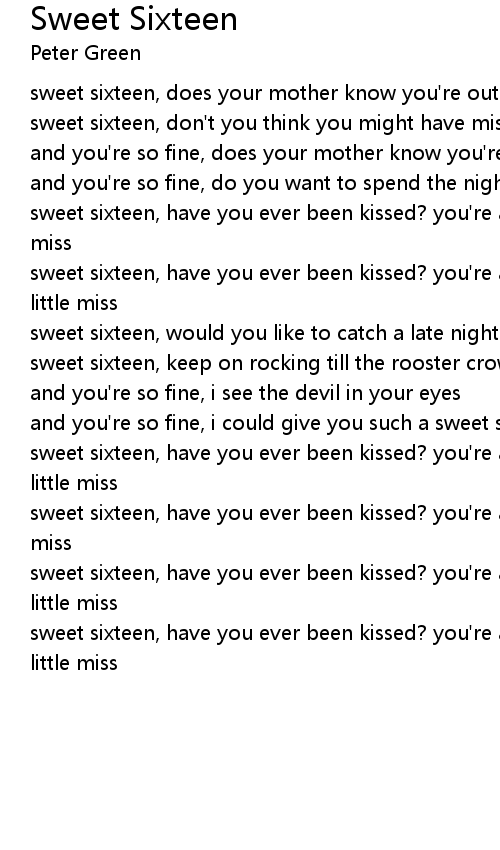 sweet sixteen, have you ever been kissed? you're a teenage swinger, not a little miss |