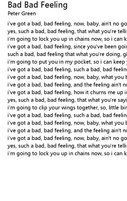 i've got a bad, bad feeling, and the feeling ain't no good |