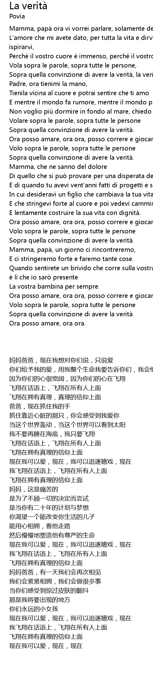 | [00:31.29] | Sopra quella convinzione di avere la verita, la verita |