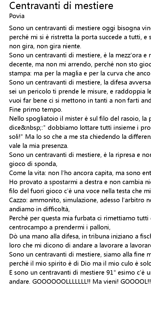 | Sono un centravanti di mestiere, e la ripresa e non si sfonda, spalle girate e gioco di sponda, | |