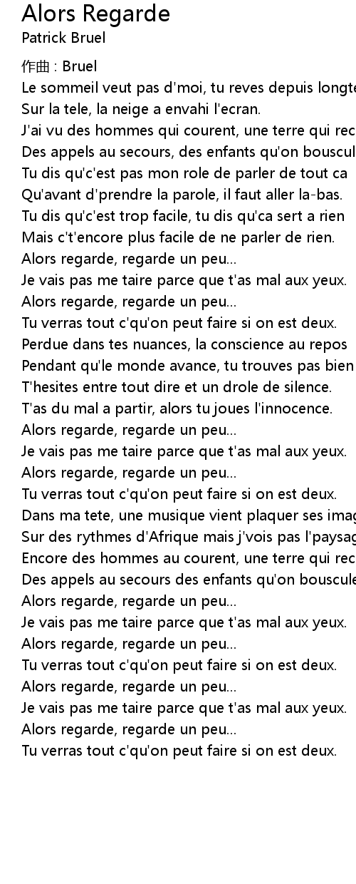 | Song | Alors Regarde |