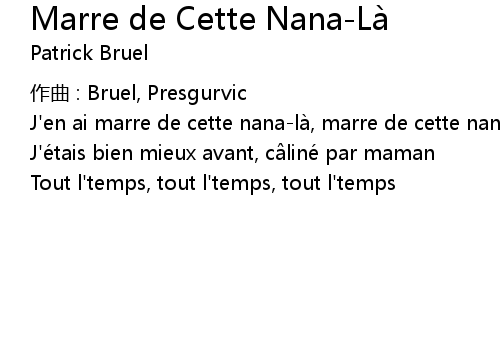 | J' en ai marre de cette nanalà, marre de cette nana | |