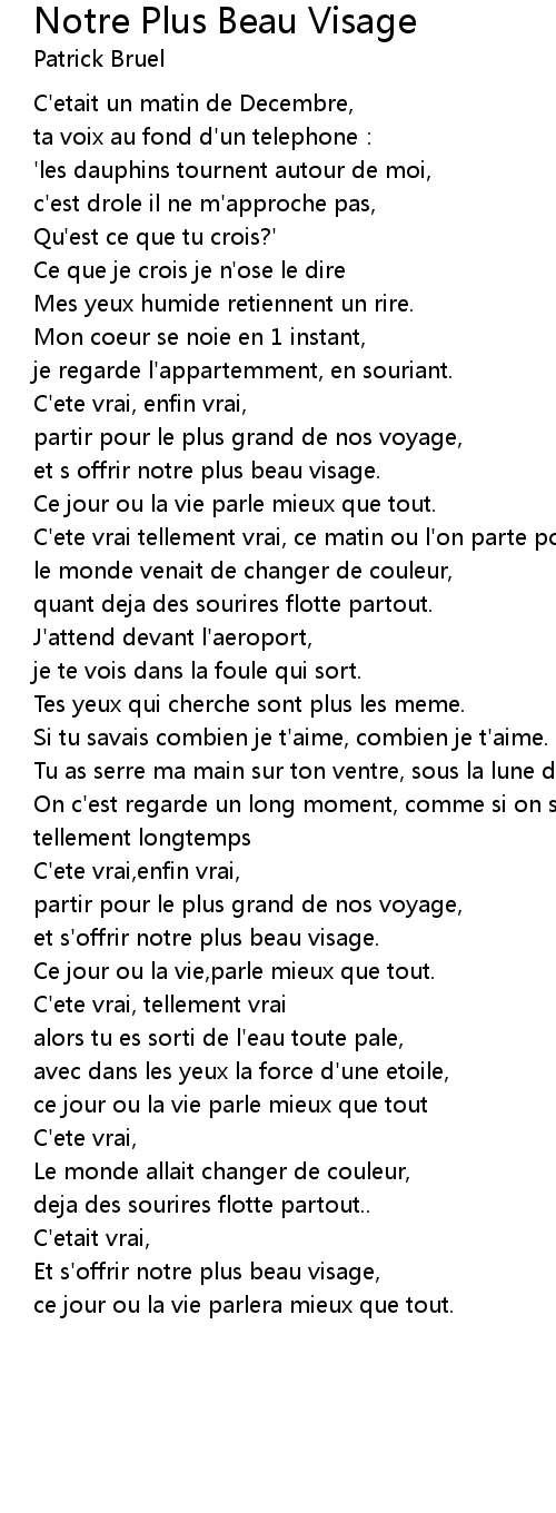 | Song | Notre Plus Beau Visage |
