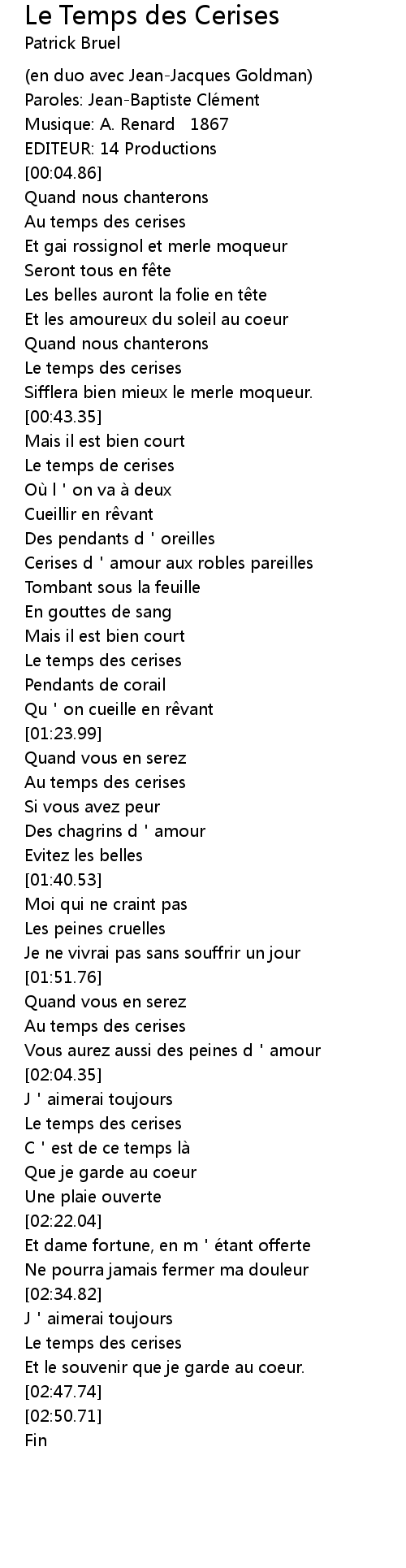| [02:37.81] | Le temps des cerises |
