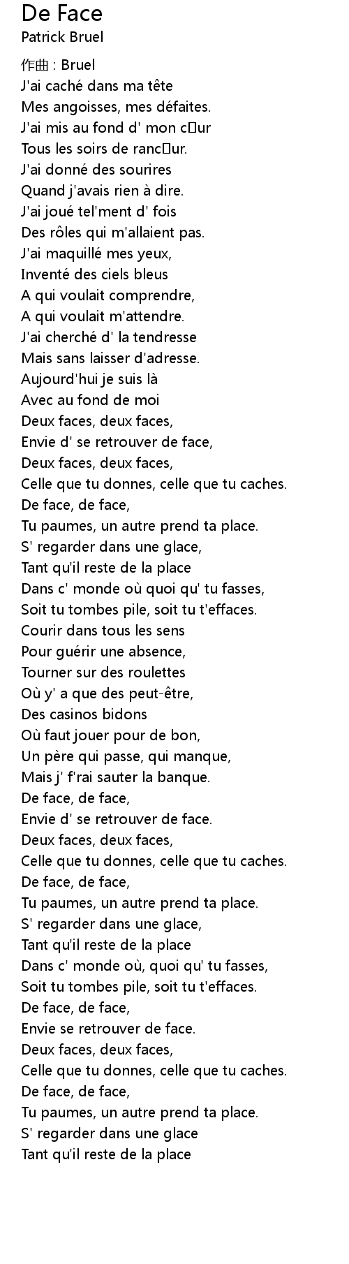 | Soit tu tombes pile, soit tu t' effaces. | |