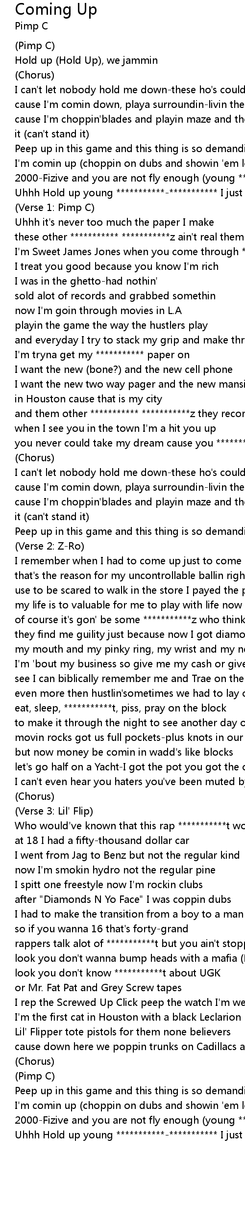 Uhhh Hold up young ***********-*********** I just don't wanna stop comin'up |