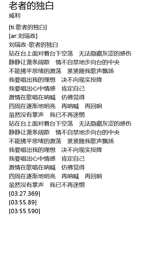 | [00:00.674] | 刘瑞政-歌者的独白 |