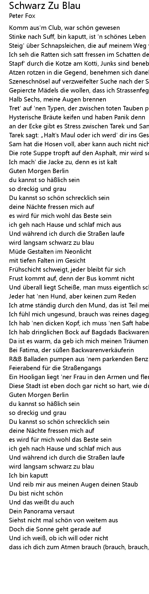 | Stinke nach Suff, bin kaputt, ist ' n sch nes Leben | |