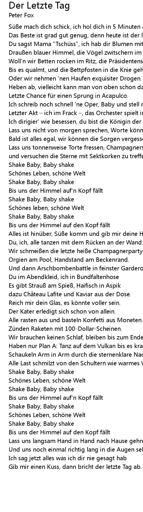 | Gib mir einen Kuss, dann bricht der letzte Tag ab. |