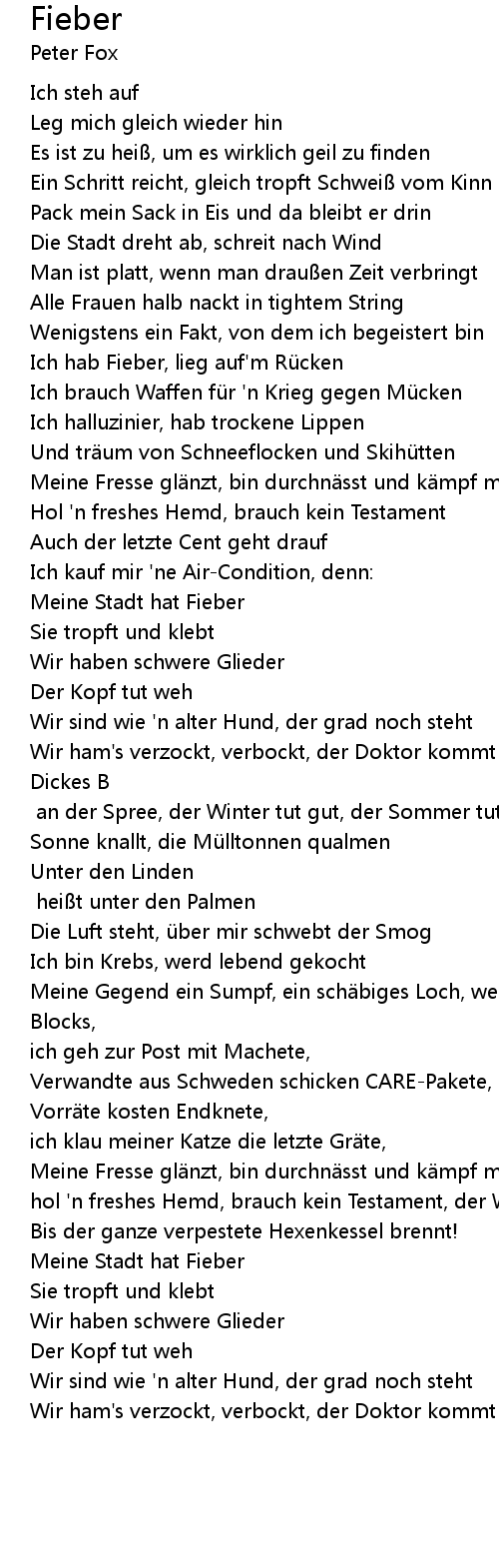 | Ich hab Fieber, lieg auf' m Rü cken | |