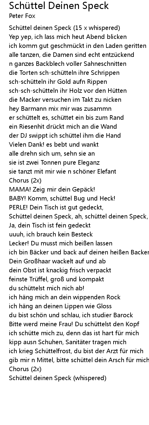 | Schüttel deinen Speck, ah, schüttel deinen Speck, ah | |