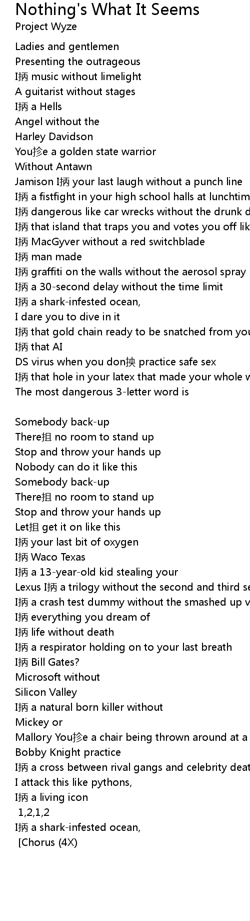 | You wanna see the apocalypse, then turn my mic on [Chorus (2X)] 1,2,1,2 | |