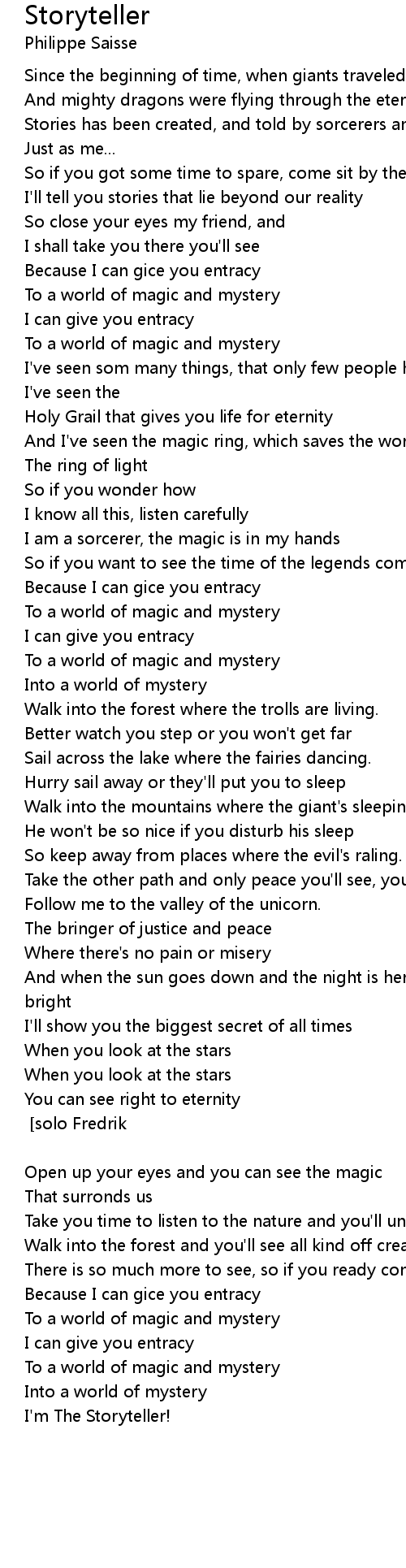 Stories has been created, and told by sorcerers and wise men |