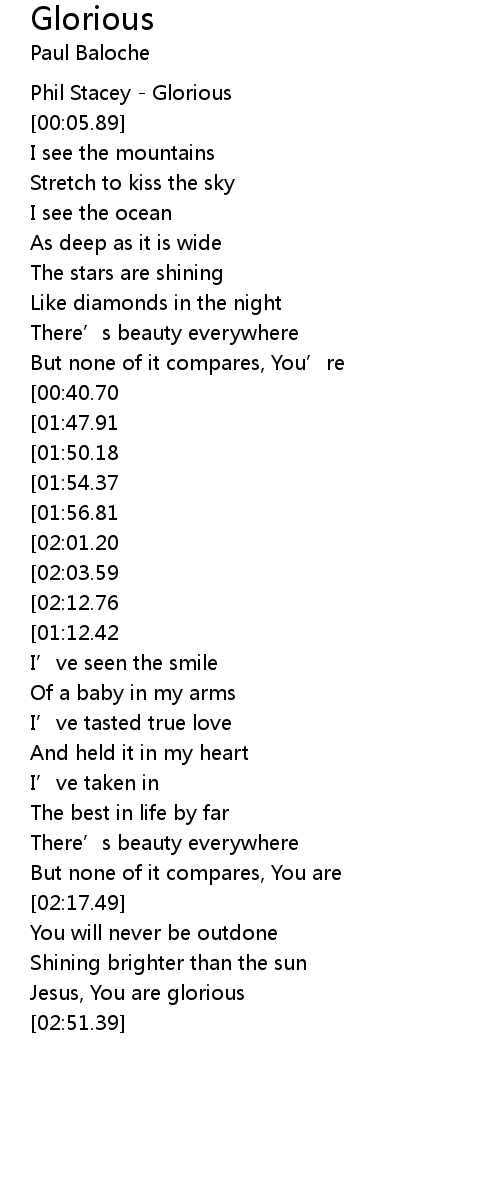 | [02:54.63][01:47.91][00:41.16] | Glorious |