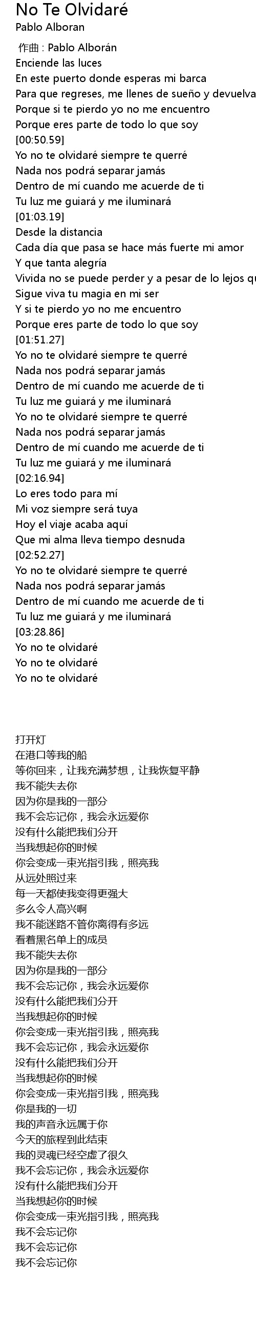 | [03:16.42] | Yo no te olvidaré siempre te querré |
