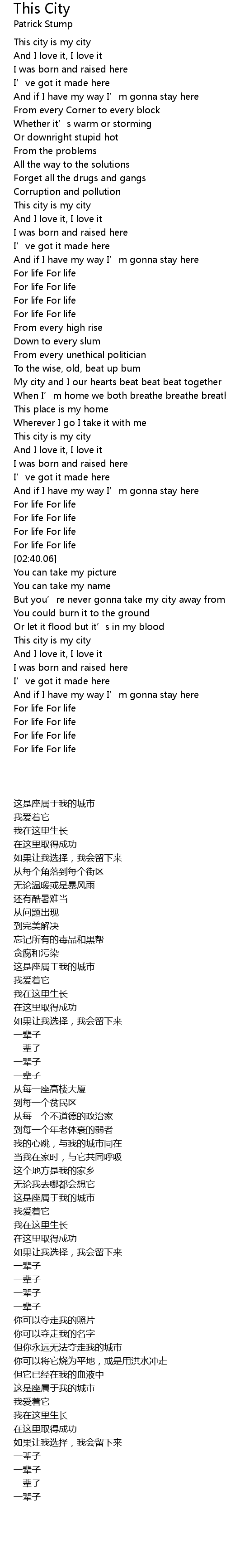 | [01:50.93] | My city and I our hearts beat beat beat together |
