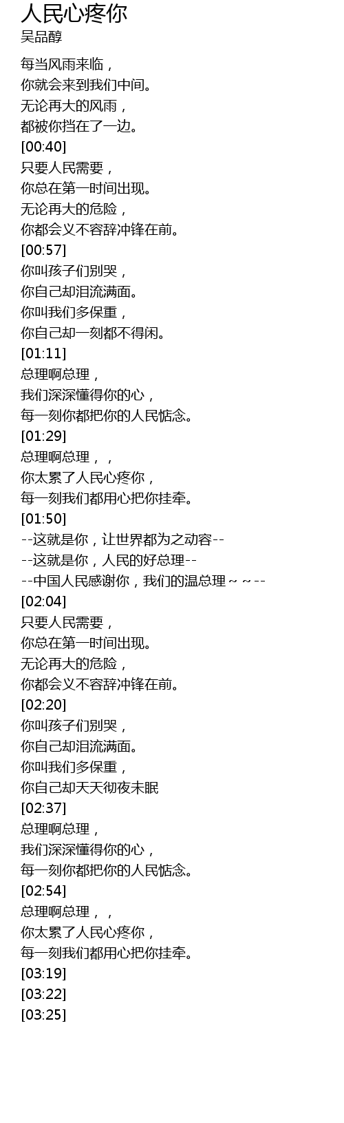 | [02:58] | nǐ tài lèi le rén mín xīn téng nǐ, |