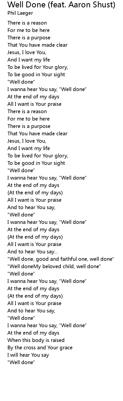 I wanna hear You say, "Well done" |