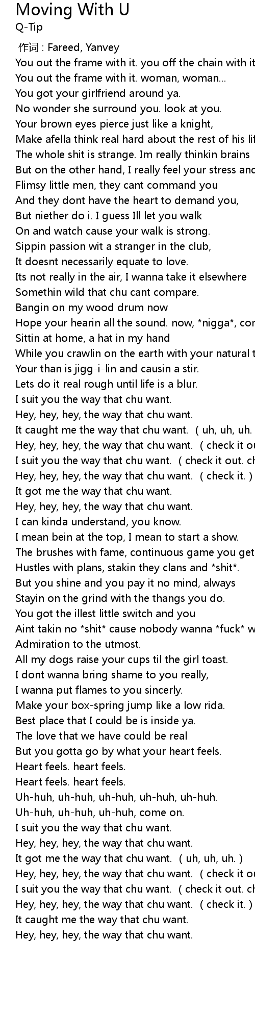 | [01:21.68] | Hey, hey, hey, the way that chu want. (check it out, now.) |