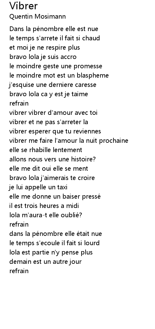 | vibrer vibrer d' amour avec toi | |