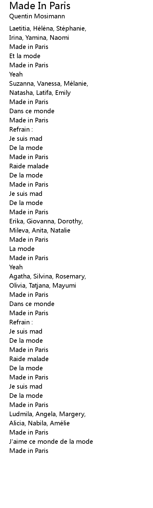 | Song | Made In Paris |