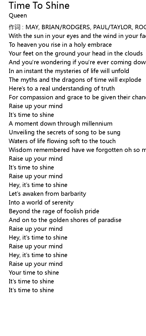 | Hey, it' s time to shine | |