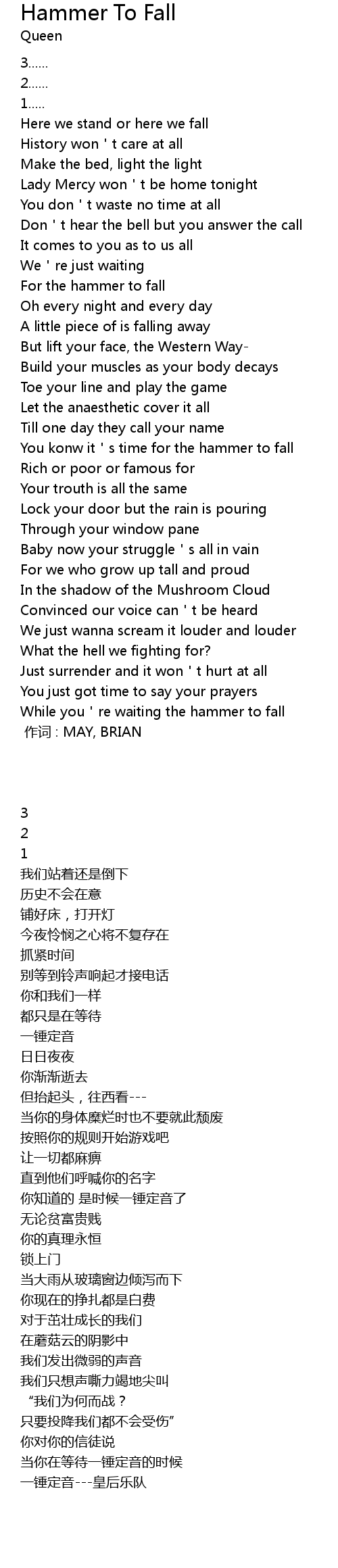 | [00:00.00] | 作词 : MAY, BRIAN |