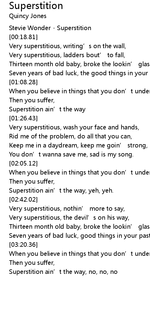 | [02:13.31] | Superstition ain' t the way, yeh, yeh. |