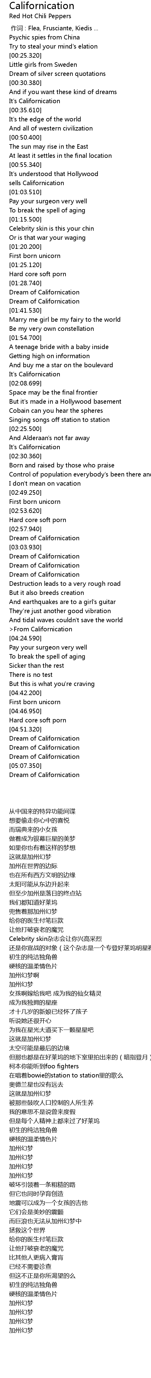 | [03:15.410] | Dream of Californication |
