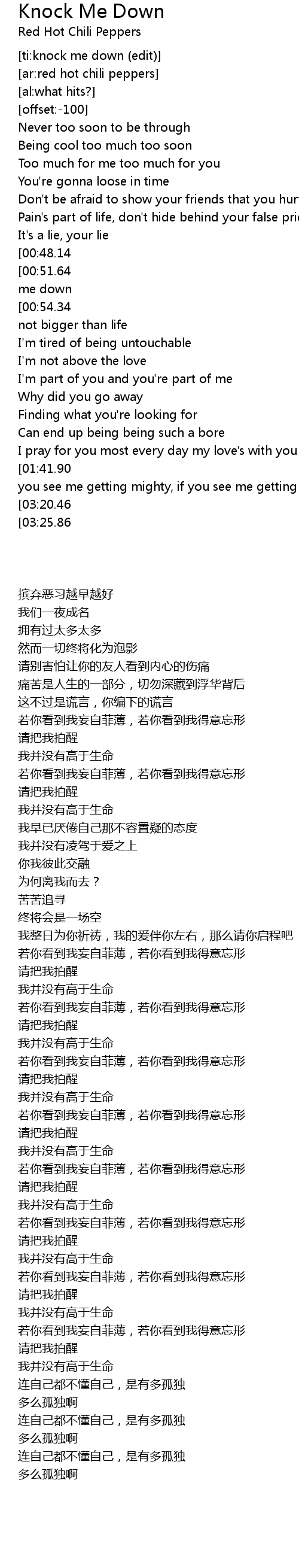 [00:44.03][00:51.64][01:37.99][01:45.59][02:14.79][02:22.49][02:30.04][02:37.76][02:45.51][02:53.11] Knock me down