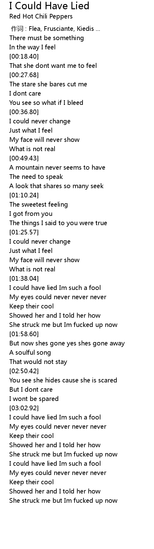 | [00:00.00] | zuò cí : Flea, Frusciante, Kiedis ... |