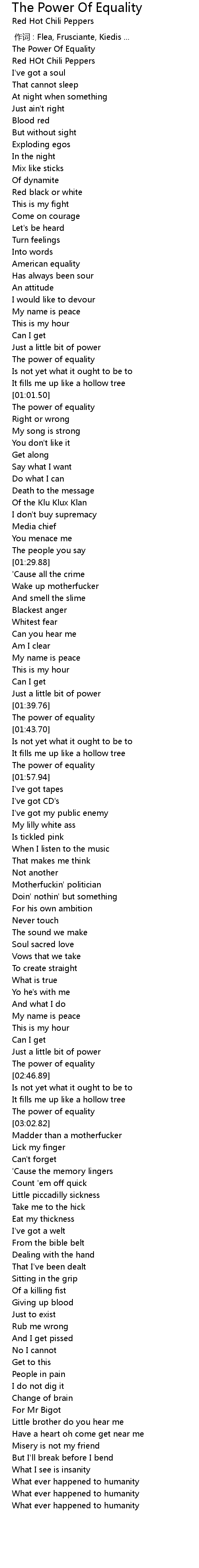| [00:00.00] | 作词 : Flea, Frusciante, Kiedis ... |