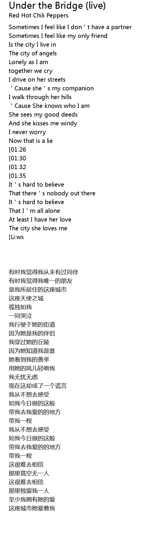 | [00:28] | Sometimes I feel like I don't have a partner |