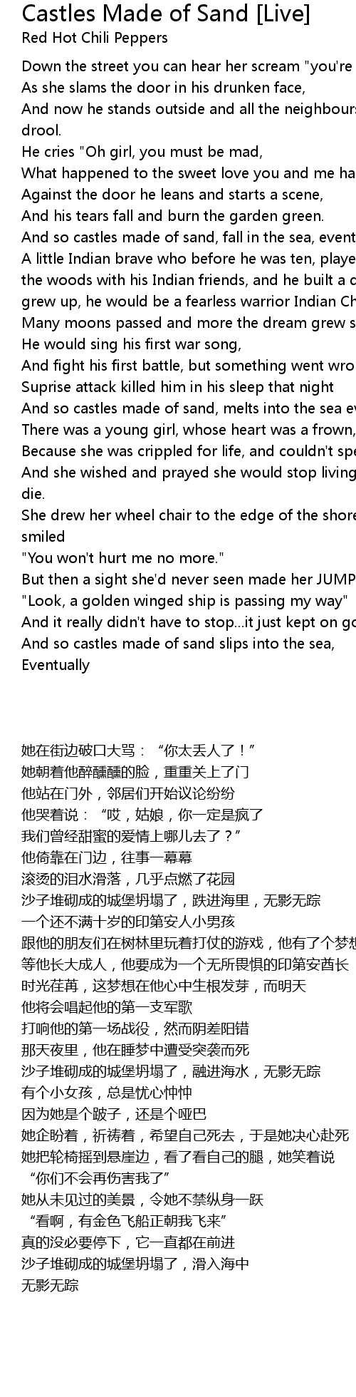 And so castles made of sand, melts into the sea eventually. |