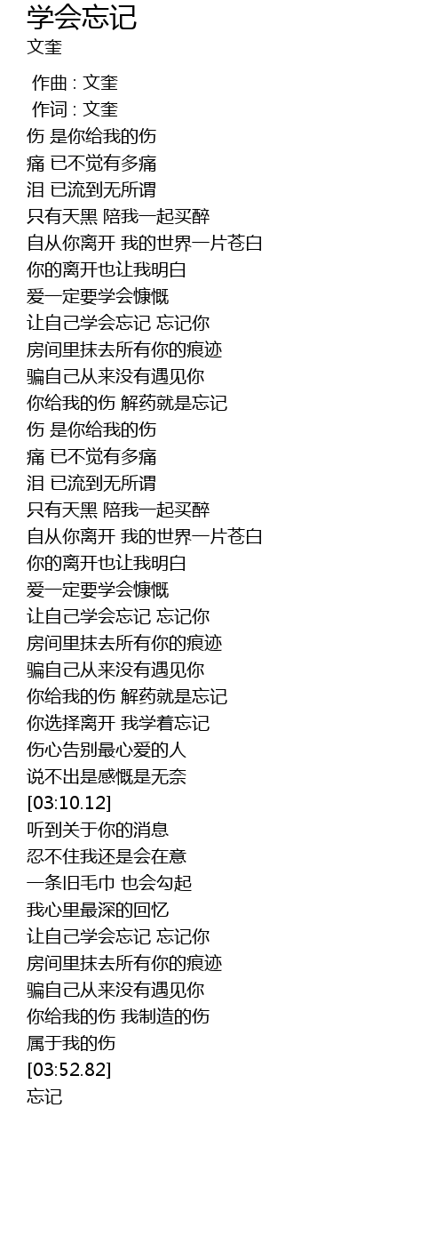 | [03:25.27] | 让自己学会忘记 忘记你 |