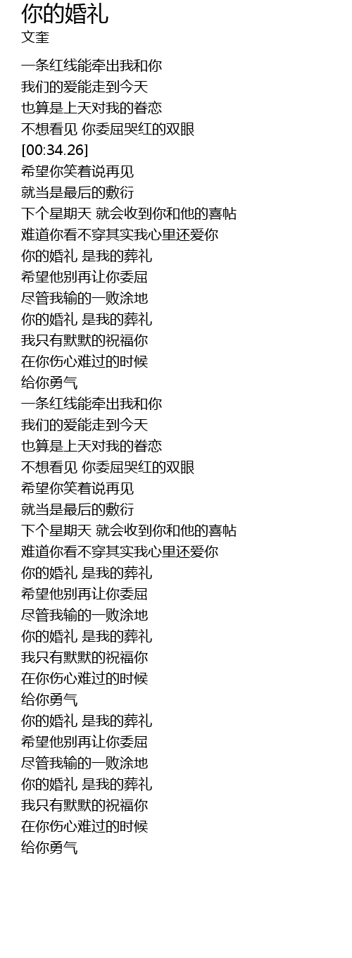 | [03:16.98] | 你的婚礼 是我的葬礼 |