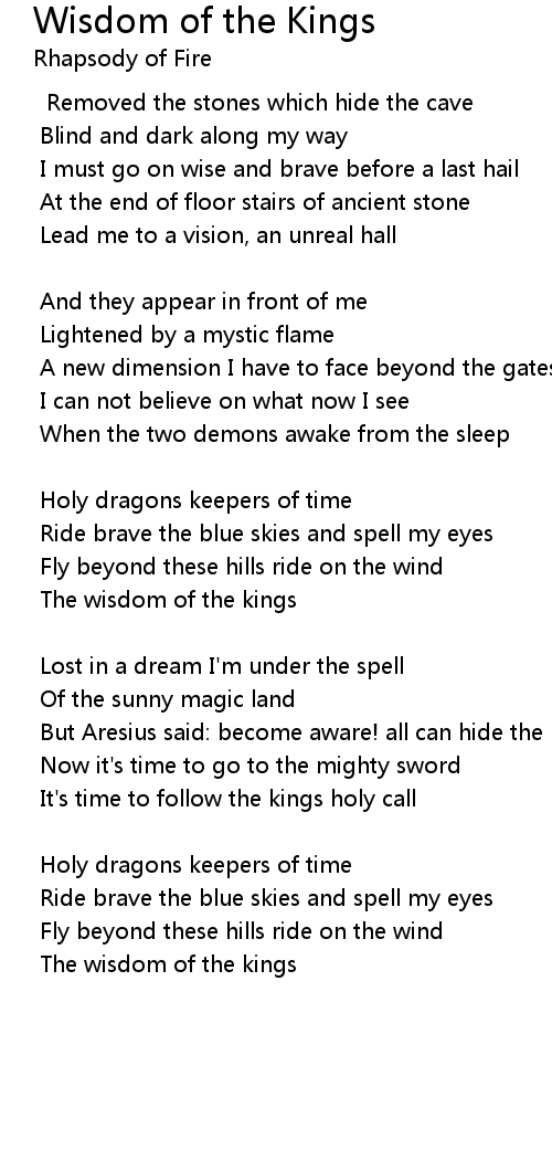 Wisdom of the Kings Lyrics