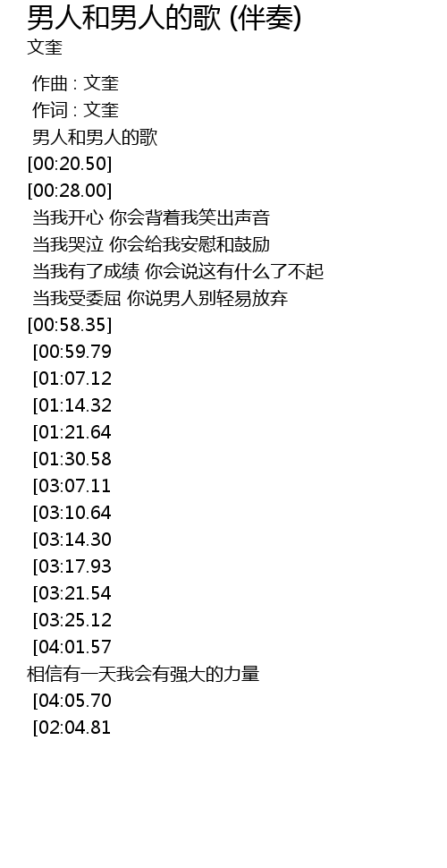 | [03:39.51] [03:07.11] [01:32.24] | 这首男人和男人的歌 |