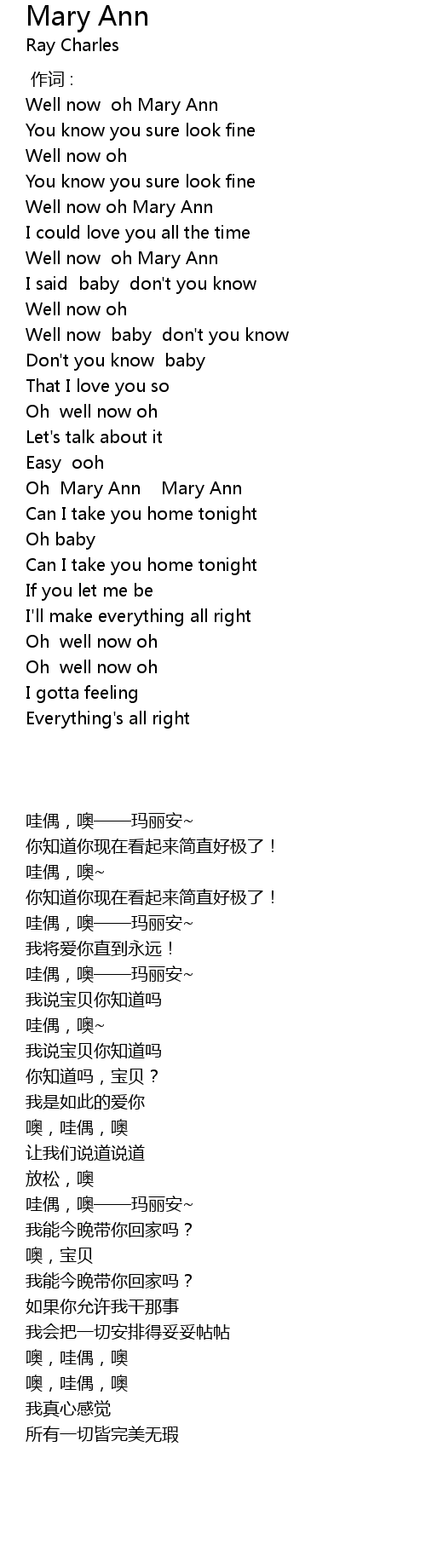 | [01:38.33] | Oh Mary Ann Mary Ann |
