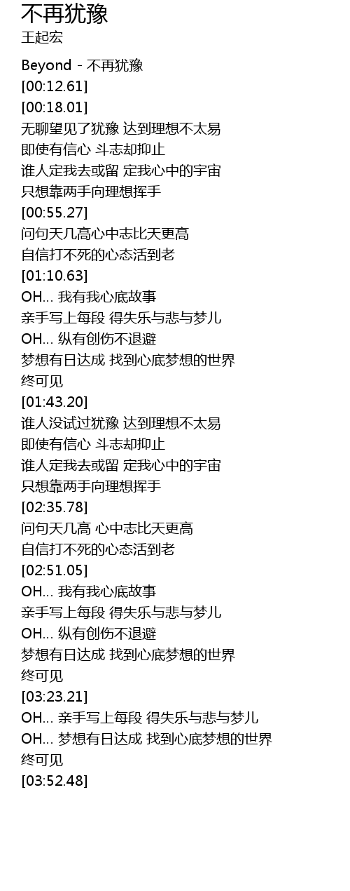 | [02:09.04] | 谁人没试过犹豫 达到理想不太易 |
