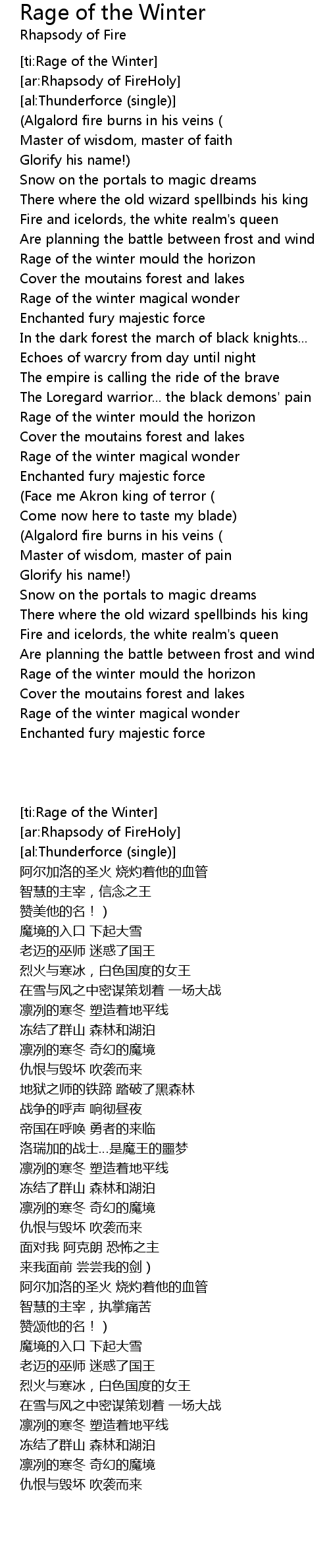 | [04:11.79] | Fire and icelords, the white realm' s queen |