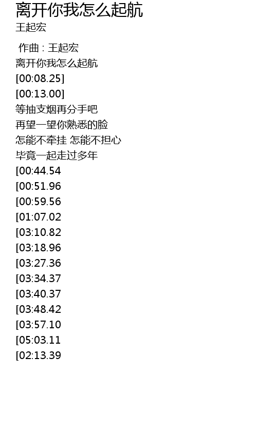 | [05:10.17][05:03.11][04:03.94][02:05.66] | 离开你我怎么起航 |