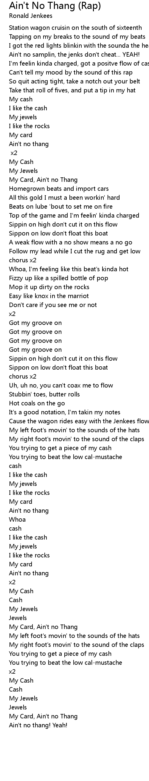 Ain't no samplin, the jenks don't cheat... YEAH! |