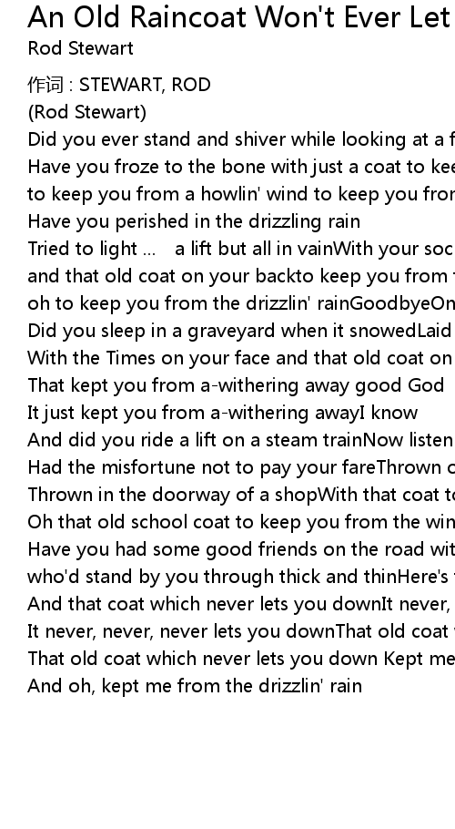 | That old coat which never lets you down Kept me from the drizzlin' rain | |