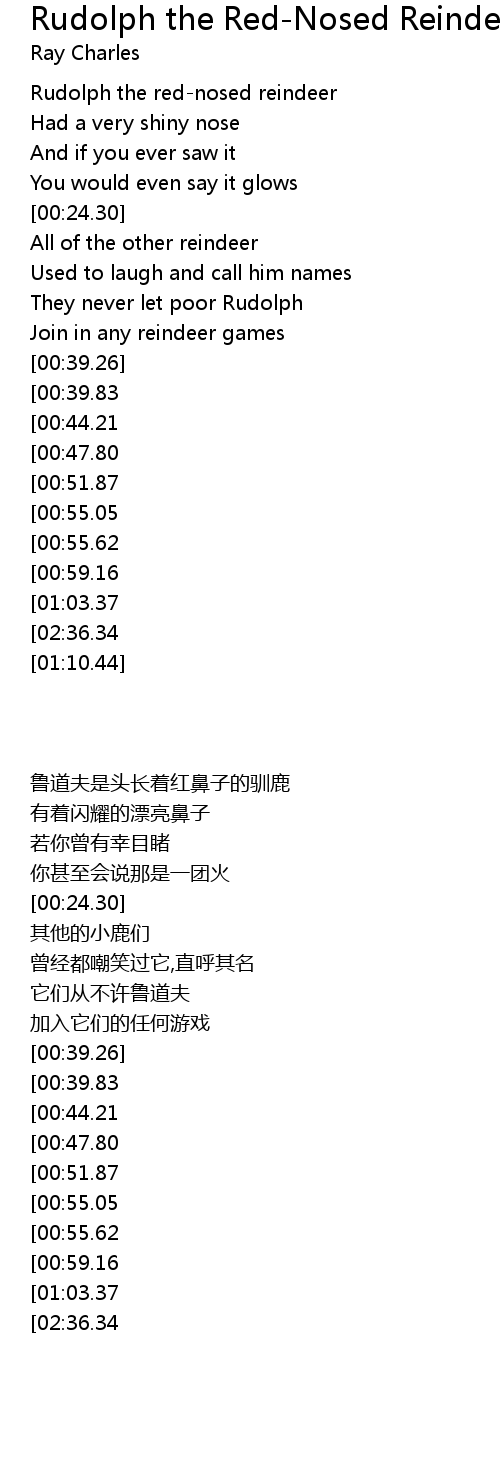 | [02:32.66][01:03.37] | "Rudolph the red-nosed reindeer “ |